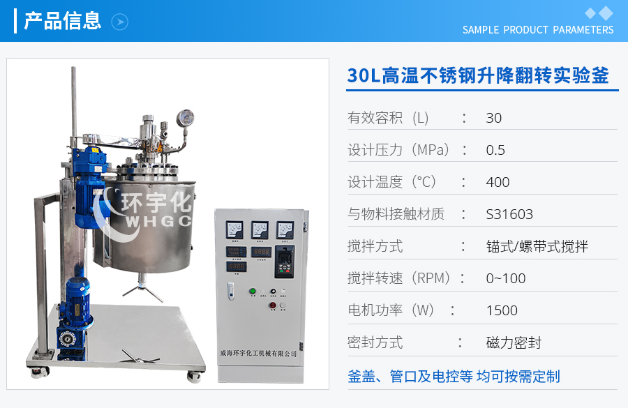 名稱:30L高溫不銹鋼升降翻轉(zhuǎn)實(shí)驗(yàn)釜